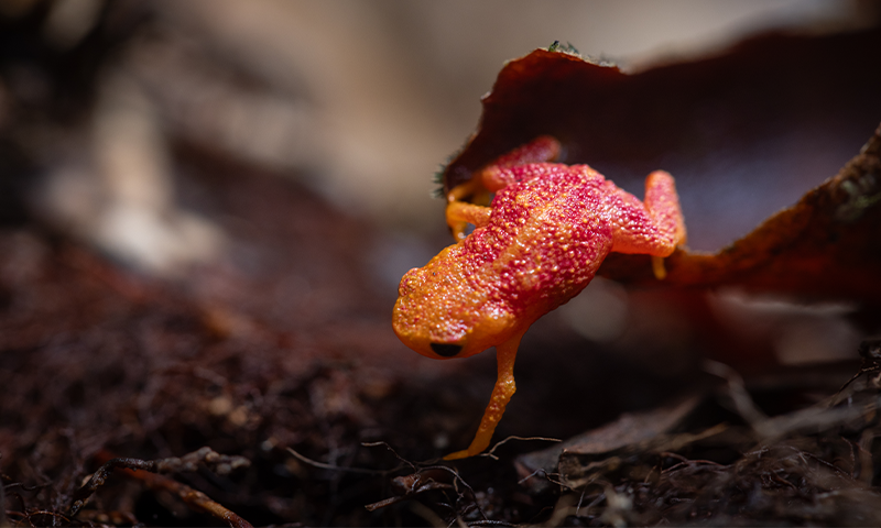 Measuring just a few millimeters long, the pumpkin toadlet is diminutive in size but flamboyant in coloration. This tiny neon creature, which lives on Brazil’s southeast coast, has become a symbol of conservation and protection for the Atlantic Forest, a rainforest that sits just 50 kilometers from Brazil’s largest city, Sao Paulo.