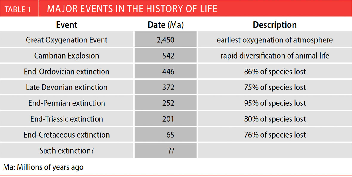 Five times in the last 500 million years, more than three-fourths of living species have vanished in mass extinctions. Each of these events (see Table 1) is associated with a significant change in Earth’s carbon cycle. Some scientists think that human-induced environmental change—including our massive discharges of carbon into the atmosphere—may soon cause a sixth major extinction. Is such a catastrophe really possible?