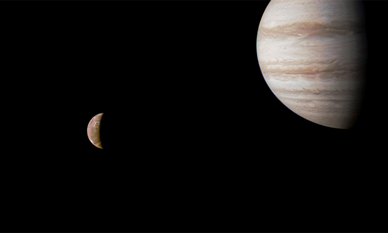 Striking images of the planet, its volcanic moon Io and its trippy atmosphere.