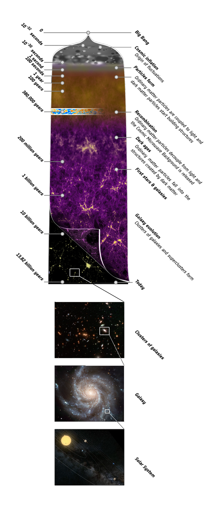 Planck was on its way to measure the gentle glow of light left over from the fiery birth of our universe, called the Cosmic Microwave Background (CMB). The CMB is a detailed fingerprint that allows us to cast our gaze onto the first few moments of our universe’s existence, and to cast light onto some very ancient questions: Where are we from, and how did we get here? (See The Standard Model.) In March of 2013, four years into its mission, the Planck collaboration released the most finely detailed map of the CMB ever measured.1 In its details was a bombshell: anomalies in the distribution of the CMB brightness that could not be the result of anything in our own universe. Here was an empirically observed hidden code pointing to a rich and vast cosmos, in which our own universe is but one humble member. The limits of our range of exploration had suddenly grown immensely. We were at the shore of the multiverse.