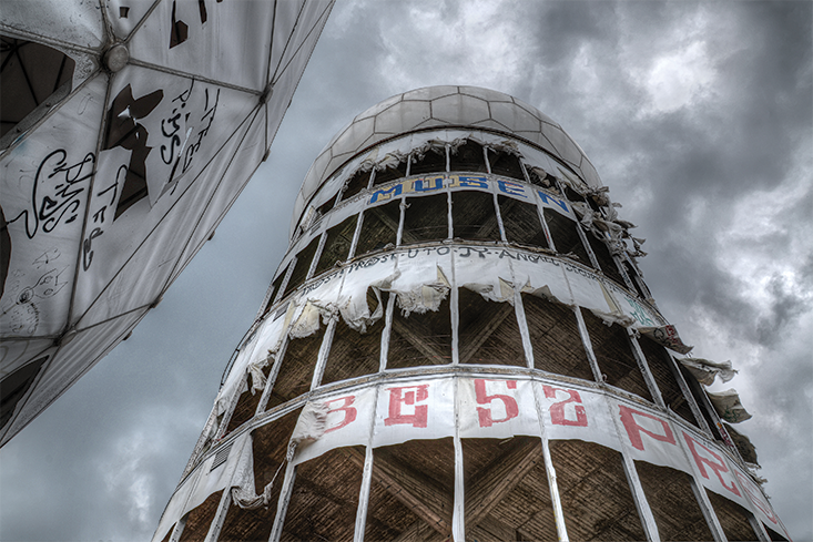 Many urban explorers scoff at Teufelsberg, a former listening station for the National Security Agency (NSA) of the United States that sits on Berlin’s highest point of elevation, translated as the “devil’s mountain.” It is a public place that is a popular tourist destination. Everybody and their mother has been there; director David Lynch even made a pitch some years ago to buy what remains of the concrete skeleton holding oversized, golf ball like radar domes whose torn fabric covers rattle deafeningly in the wind. Teufelsberg was built out of the rubble of bombed out buildings and outfitted with listening devices to pick up on signals from east of the Iron Curtain. The first Allied spying activities on the site date back to the late 1950s, though it wasn’t until later that the NSA erected the permanent structure with which the hill has become eponymous. Despite its name, there is nothing particularly hellish about the place. Except, perhaps, that it epitomizes the history of the Cold War, born out of the destruction of the war that went before it. In the early 1990s, the NSA gutted the building, removing all electronics and antennas, leaving only the vast and empty structure that remains on the site and a ghostly presence. In its current state as a ruin—derelict and full of graffiti—the former listening station has much to say about how we remember.