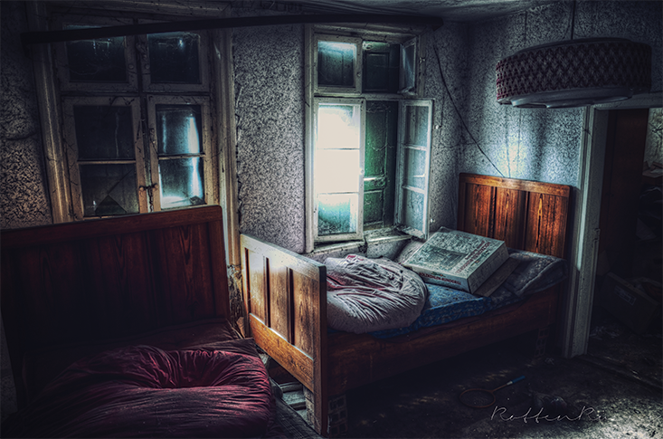 The view into someone else’s bedroom is the most sought after type of photograph. All I know about the abandoned house in these pictures is that it is located somewhere in East Germany, no more than an hour’s drive from Berlin. I’m not supposed to know anything else. These places are the best-kept secrets and the most coveted treasures of the urban explorer community; to make their details public amounts to treason. The idea, I’m told, is that flocks of ruin-tourists would descend on them, and disturb their peace. People tend to be more respectful of personal ruins than public ones. They don’t project a historical context as forcefully, and we don’t view them through that lens, in contrast to, say, the garrison or the Teufelsberg listening station. Rather, our access point is entirely through memory—memory that is immediate, personal, and usually oblique. After all, we enter into a private, domestic space. One not too dissimilar to the one we ourselves inhabit and inscribe with our own lived experience.