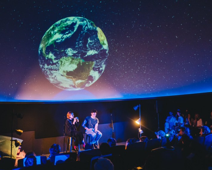 On a sweltering Tuesday in July, scores of music fans (including four lucky Nautilus contest winners) packed into a cool, dark planetarium for an evening of music under the stars with indie rock artist Cassandra Jenkins. Jenkins, whose album My Light, My Destroyer debuted earlier this month, crafted a tailor-made visual show to accompany her latest offering. For nearly 40 minutes the audience watched—necks craned toward the “sky”—as a series of cascading celestial events unfolded on the dome above, perfectly synchronized with her songs.