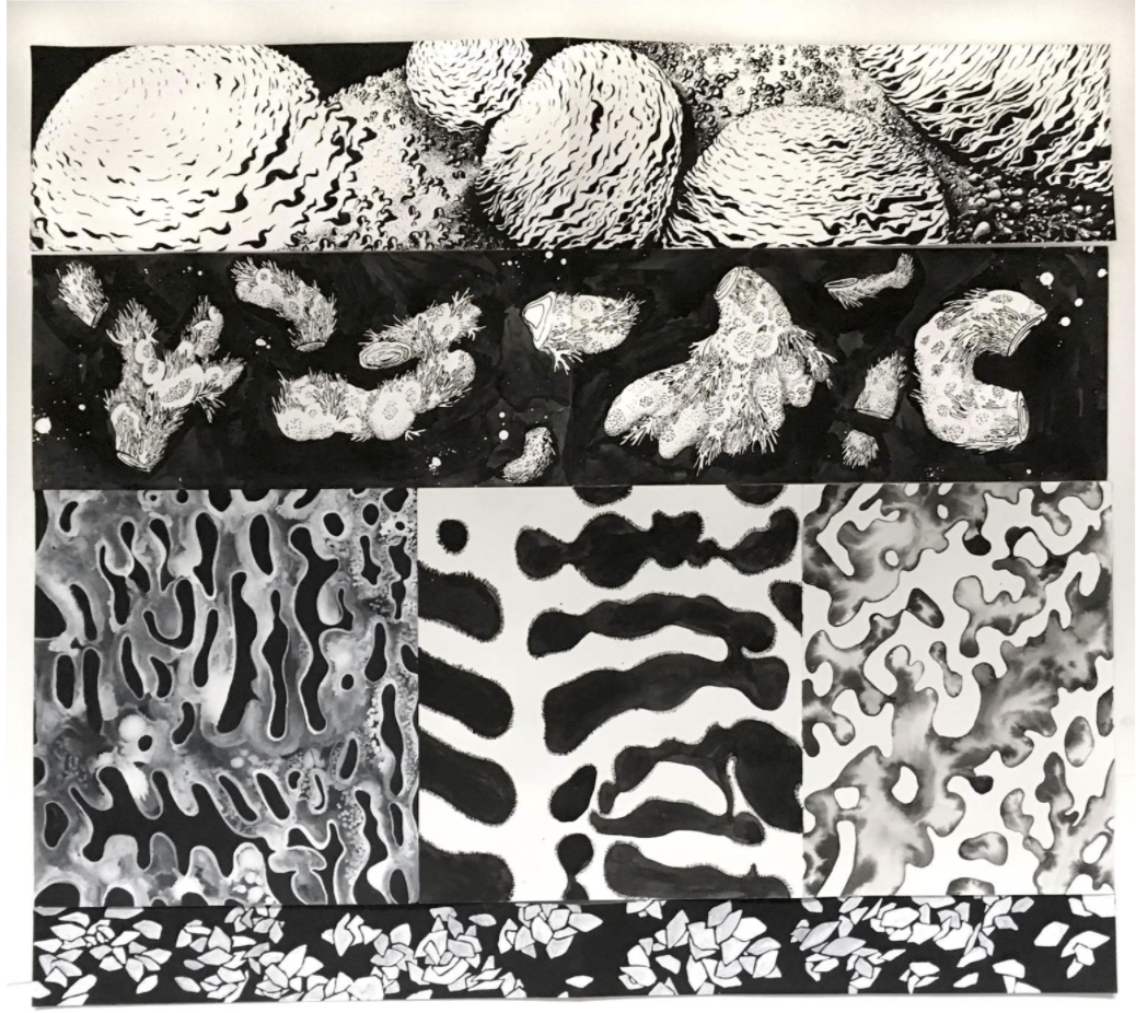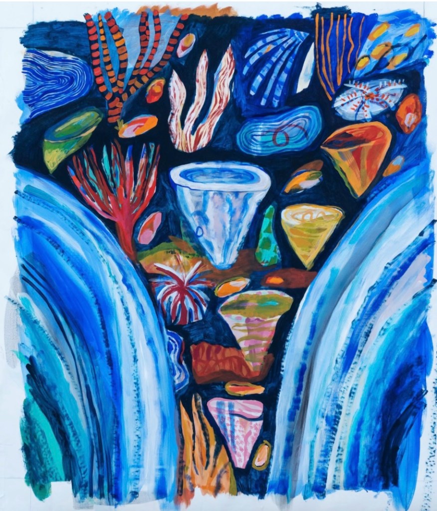 Colorful, semi-abstract paintings based on various life and creatures seen in the mesophotic area of Ashmore Reef off North West Australia during ROV SuBastian's dives.