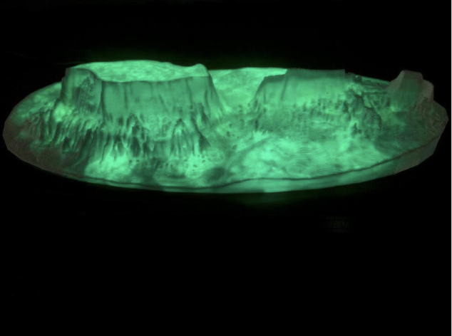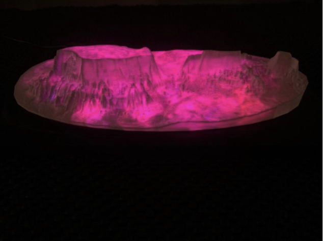 3D printed lamp using data from R/V Falkor's mapping of Osprey Reef, Shark Reef, and Vera Reef in Australia.