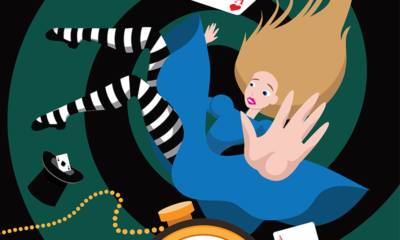 Imagine, as you’re getting up from the dinner table, as you blink, you look down and notice that the apple on your plate is suddenly enormous, the size of a tortoise. When you rise from your chair, you feel your legs are three times longer than normal—as though you were dangling on stilts above the table and the now monstrous fruit. If this happened to you, you might begin to suspect that you had slipped down the rabbit hole into Lewis Carroll’s Wonderland along with Alice.