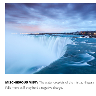 There is something remarkable about the mist surrounding Niagara Falls: The individual droplets move as if they are negatively charged.