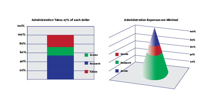 In both charts, administrative costs take almost a third of each dollar. While this matches reasonably with the left chart, the right chart seems to shrink administrative costs to something much less than a third. “Anytime you ask anyone to judge just height and ignore the other measurements,” says Rosenholtz, “it’s going to take extra cognitive load to disregard these other cues.”