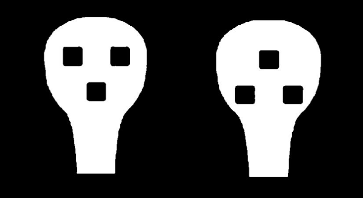 Our brains seem to be pre-wired to recognize the shape of the human face—and anything that vaguely resembles it. One 1991 study found that newborn babies prefer to look at the crudely face-like shape on the left than its inverse on the right: