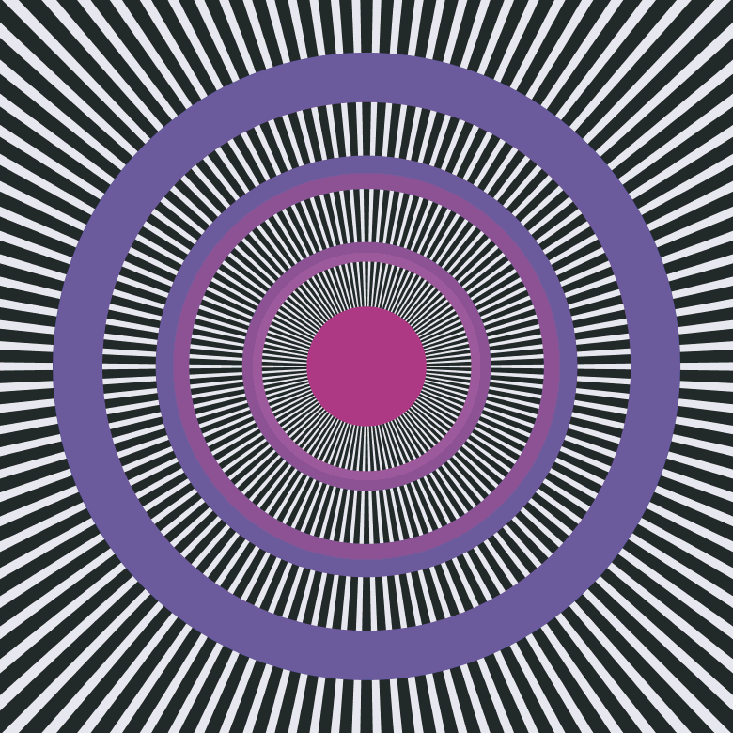 Most people perceive an illusion of flowing motion inside of the purple circles. For nearly two centuries scientists had wondered why these kinds of repetitive patterns lead to the perception of motion, even after Leviant’s painting helped make the illusion famous.