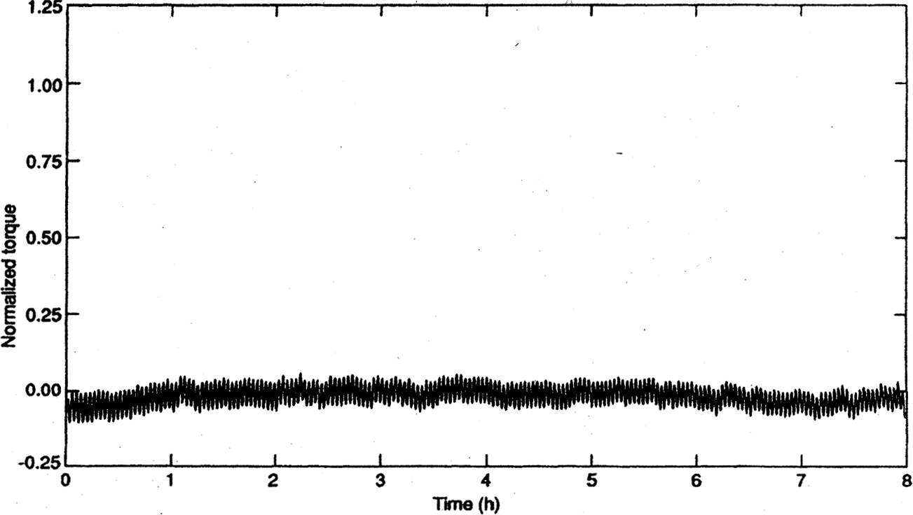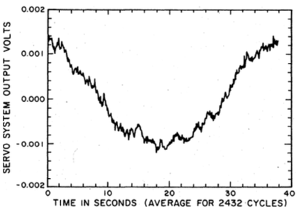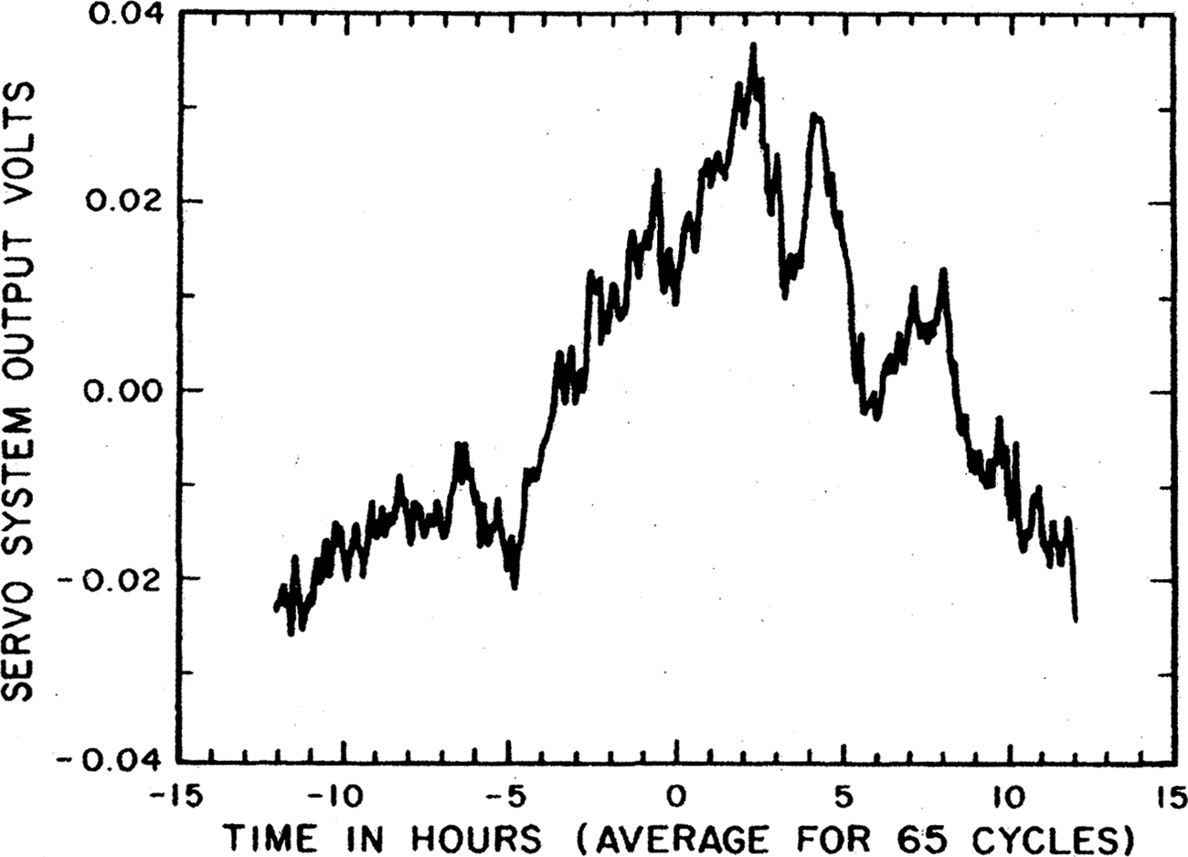 The experiment used two identical torsion balances consisting of two sapphire crystals, suspended side by side in a vacuum chamber. Shield crystals were placed in front of the sapphire disks shielding half of each disk. Thus the neutrinos would exert forces that would result in a differential rotation between the two balances, if Weber was correct. The expected differential rotation would be measured using an interferometer (Figure 15). A bar of fused silica was mounted on the top of each of the sapphire disks and positioned at an angle of 45° relative to the beams from a helium-neon laser. A rotation of the bars would increase or decrease the optical path length of the laser beams passing through them. A common rotation would have no effect on the fringe pattern, whereas a differential rotation would produce a measurable change in the pattern. The experimental apparatus was calibrated by applying a known torque to one of the torsional pendula. The estimated torque was in good agreement with the measured torque. The experimenters calculated that the apparatus would be sensitive to the neutrino flux in an interval of 20 minutes at sunrise each day. The expected result was calculated and is shown in Figure 16. A typical data run began around midnight and lasted until one hour after sunrise. A typical observed result is shown in Figure 17. “It can be seen that the signal-to-noise ratio was sufficiently high that neutrino scattering of the expected magnitude should have been apparent from a single experimental run and that none was observed” (pp. 2237–8). The data for 22 experimental runs gave an average value for f = 0.0033 ± 0.0030 where τ(t) f τe(t), where τ(t) was the measured torque, τe(t) was the expected torque, and f was a parameter obtained from a least squares at to the data. Franson and Jacobs concluded that, “The uncertainty (one standard deviation) in this estimate was obtained from the observed variation in the results of the 22 individual experimental runs and is a factor of 330 less than one would expect from total scattering ( f = 1). These results are inconsistent with the corresponding value ( f = 0.86) obtained in the earlier experiments ...” (p. 2238).