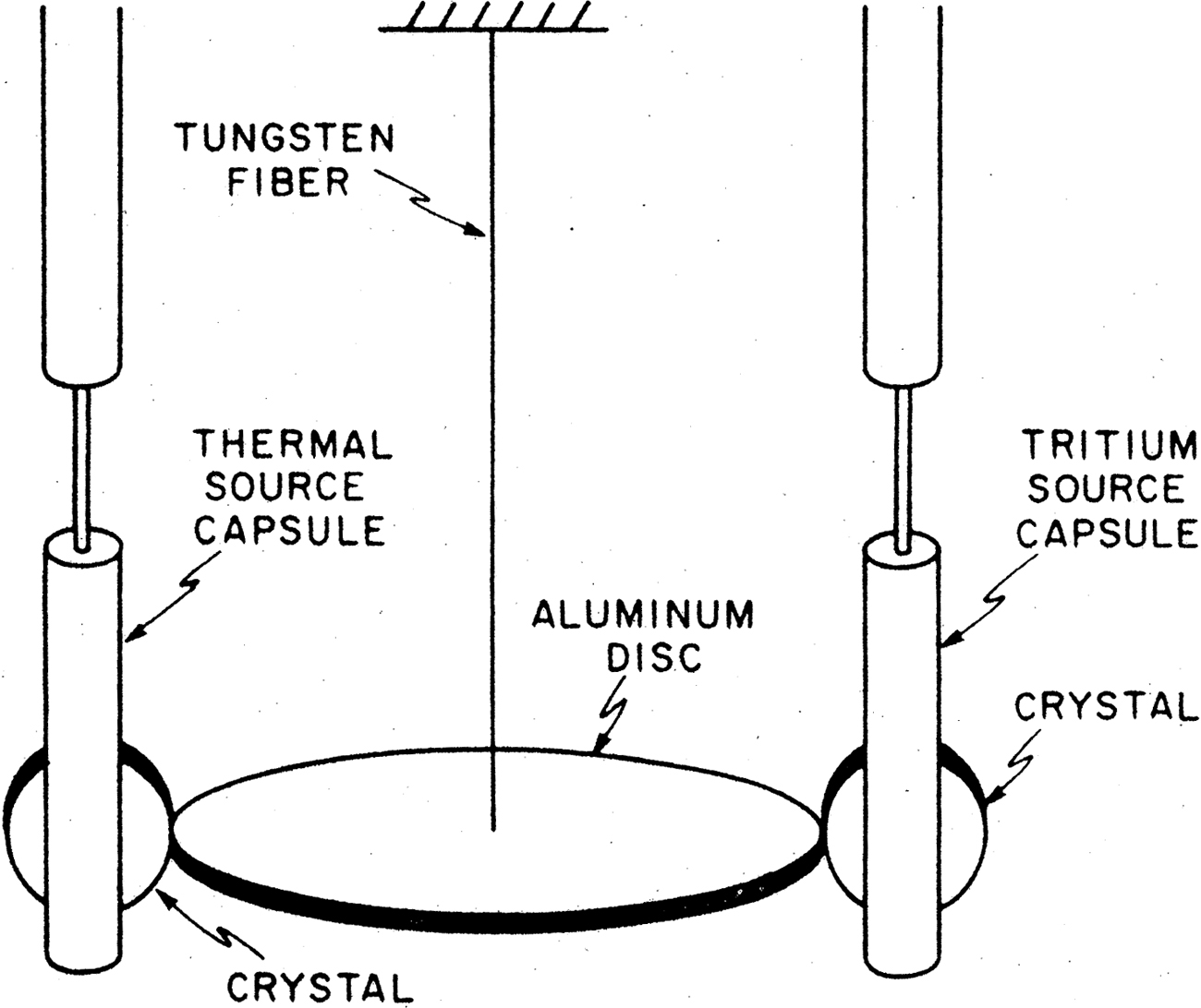 A 3000 Ci [Curie] tritium source generates 0.1 W as a result of the kinetic energy of the 6-keV decay electrons. A torsion balance will respond to a heat source for several reasons. Thermal gradients may result in unbalanced gas pressures; thermoelectric effects may generate potentials. In order to make the thermal effects as small as possible, the cylinders in which the tritium source moved were enclosed in several layers of superinsulation. It was observed that the thermal effect has a relaxation time of several minutes. To reduce the thermal contribution, the servosystem [used to detect any deflection of the balance] was designed with a response time of 9 sec. It was also observed that the sign of the thermal response was opposite in the two cylinders for raising and lowering the tritium source and the dummy. An electrically heated resistance was installed in the dummy. Observations then indicated that the thermal response force was less than 10% of the antineutrino forces in these experiments. Since the masses of the tritium source and dummy capsules were equal, the gravitational force of the tritium source was also balanced out. (Weber 1984, p. 1198)