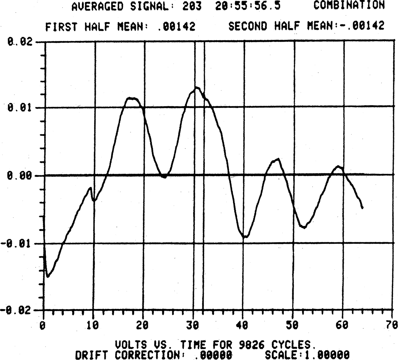 The output voltage for the gravitational interaction of the lead mass with the target crystal, an attractive force, is shown in Figure 7. Figure 8 shows the output voltage for the interaction of the tritium source with the target crystal, expected to be repulsive. They clearly show opposite effects, as expected. The predicted results are shown in Figures 9 and 10, and are in agreement with the observations. Weber calculated a scattering cross-section of 1.06 ± 0.44 cm2 and remarked that “It is noted that this is a ‘blind’ experiment. All data are on a magnetic tape which is processed by a programmer who has no information concerning what is expected. Figures [7] and [8], without corrections, imply that a repulsive force is being observed consistent with a large scattering cross section” (p. 1203). Weber’s comments were intended to avoid any repetition of the accusation that he had manipulated his analysis procedure to maximize his expected effect.