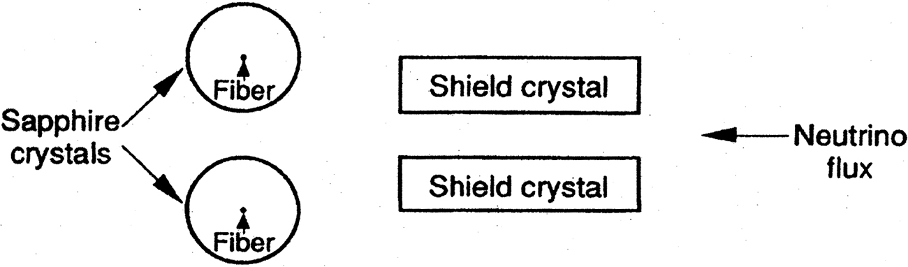 Weber’s 1984 paper also contained a startling new theoretical suggestion concerning neutrino detection, as well as experimental results which supported that hypothesis. Weber, assuming an infinitely stiff crystal, calculated that the coherent scattering of neutrinos from such a crystal would vary with N2, where N was the number of scatterers.20 For a macroscopic crystal N would be a very large number21 and this would increase the very small neutrino scattering cross-section by many orders of magnitude. This would mean that instead of using a tank containing 100,000 gallons of cleaning fluid,22 one could use a sapphire crystal that one could hold in one’s hand as a neutrino detector.
