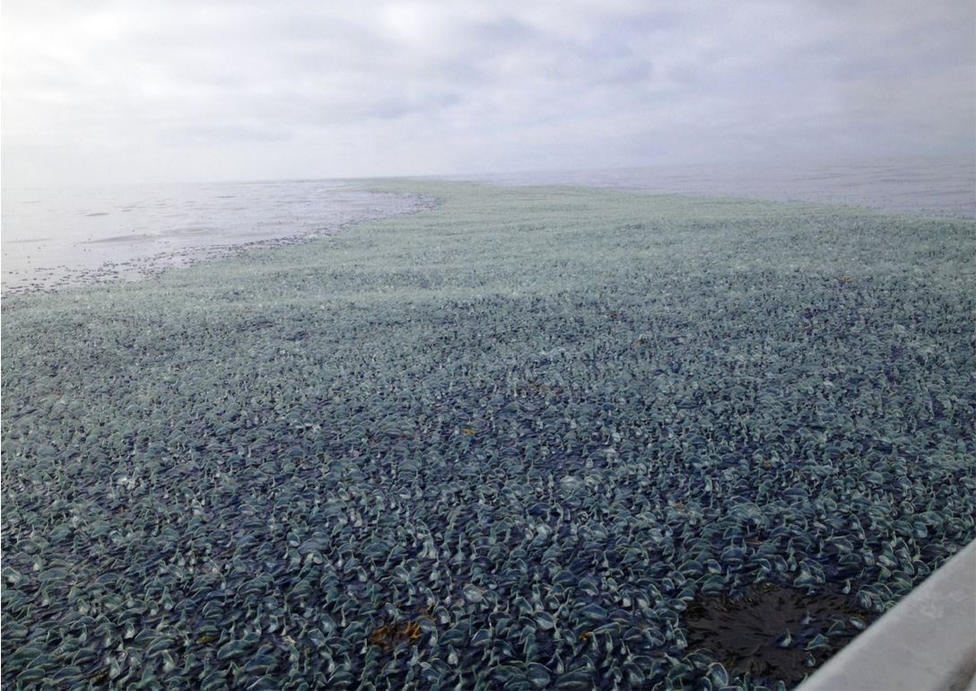 As a marine biologist, one of the weirder creatures I’ve encountered is Velella velella, a type of jelly that looks like a blue sailboat grafted to a feather boa. We don’t know much about Velella: where they live and what they eat; where they go when they’re young and how big they get when they’re old. But we’ve got some ideas, because every year these living sailboats turn beaches around the world bright blue.