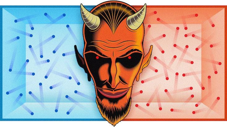 What if, suggested Maxwell, a tiny imaginary creature—a demon, as it was later called—sat at the door. Every time it saw a fast-moving particle approaching from the left-hand side, it opened the door and let it into the right-hand compartment. And every time a slow-moving particle approached from the right, the demon let it into the left-hand compartment.