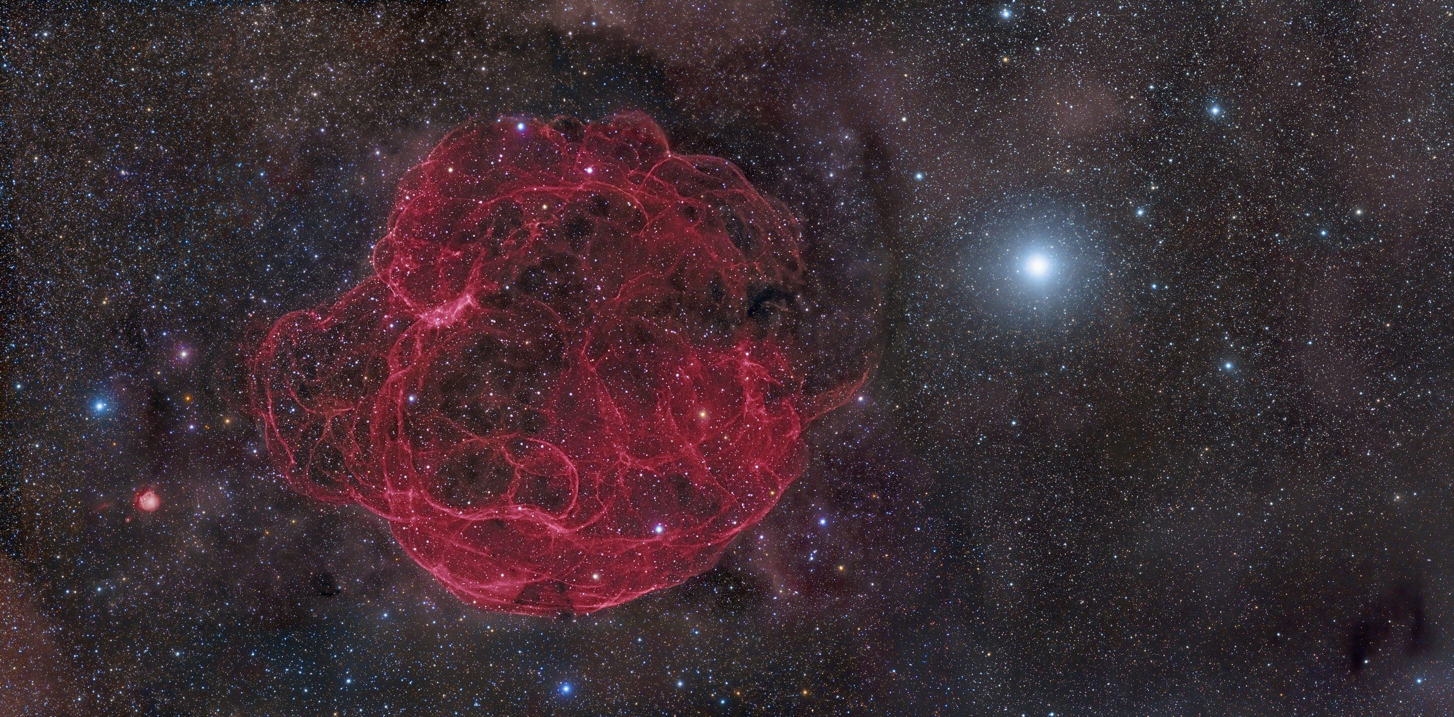 Lead image: The supernova remnant Simeis 147 marks the site of a stellar explosion 3,000 light-years away. Another supernova that was just 325 light-years away left measurable traces in Earth’s crust, and perhaps contributed to widespread extinctions 2.6 million years ago. Credit: Rogelio Bernal Andreo