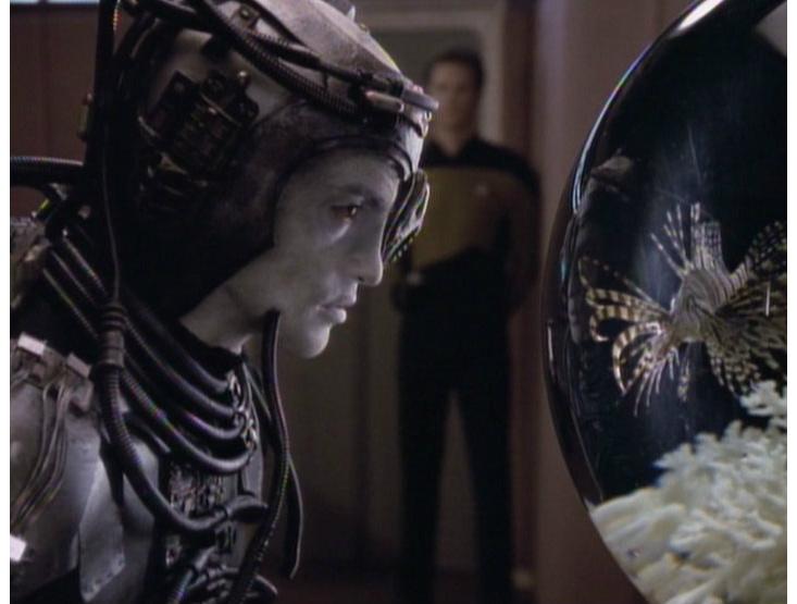 But what about the Borg? Are they destined to remain nothing more than unconscious automatons for all Star Trek eternity? In a case of art imitating life (if in fact Jaynes’ theory is correct), it turns out it is possible for the Borg to undergo a transformation similar to the one undergone by bicameral humans. In the episode “I, Borg,” a single injured cyborg is captured and disconnected from the collective by the Enterprise crew. With the Borg executive silenced, this drone eventually becomes conscious and develops individuality, a close analog for Jaynes’ theory of the breakdown of the bicameral mind in humans. Before this transition, the isolated drone is unable to function, but afterward, it becomes endowed with a key feature of consciousness: the concept of “I.” In essence, this Borg—now named Hugh—attains human consciousness.