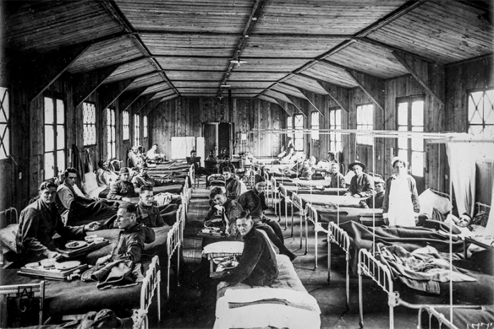 In 1918, epidemic disease and war once again embraced with all their old passion. The deadly pandemic that began that year became known as the Spanish flu because Spain was a neutral country, and its press was the first to report the devastating outbreak. The warring countries meanwhile suppressed the news, leaving their citizens unprepared. This flu was particularly terrifying because it spread so easily and because it concentrated its venom on the young. (Their elders may have acquired immunity from exposure to a previous flu outbreak.) It filled up its victims’ lungs with fluid, and the desperate hunger for air turned their skin blue as they suffocated.