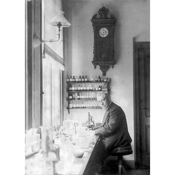 The failure of Pfeiffer’s bacillus—the failure of bacteriology—led some researchers to think back 20 years to a different and still relatively obscure line of microbial research. In 1898, Martinus Beijerinck, a microbiologist in Delft, The Netherlands, was studying a disease of tobacco plants. Beijerinck took an extract from plants infected with tobacco mosaic and put it through a Chamberland filter to screen out bacteria and other contaminants. With the filtered extract, he infected other plants, then took filtered extracts from those plants and infected still other plants, and so on in a series. Beijerinck thought the contagium consisted of nothing more than dissolved molecules. So how to explain its reproductive capabilities? He concluded that it “must be incorporated into the living protoplasm of the cell, into whose reproduction it is, in a manner of speaking, passively drawn.” This must have seemed to his contemporaries like a wildly improbable speculation. In fact, though, it fits remarkably well with the modern understanding of how a virus reproduces. What may also seem wildly improbable was that Beijerinck developed this first good description of a virus within a short walk of where Antoni van Leeuwenhoek had seen and described the first known bacteria. Thus Delft secured its place, over a distance of more than 200 years, as the cradle of microbiology.