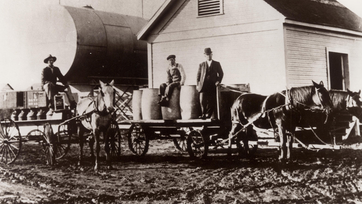 Behind teams of horses, men in tall rubber boots hauled one-ton loads of oil—six barrels to the wagon—south 15 miles to Oil City, where the barrels were transferred to barges on the Allegheny river. The men were teamsters. They charged $3 to $4 per barrel, nearly the value of each barrel’s contents. The fluctuating delivery rates depended on the depth of the oily mud the teamsters had to wade through. The teamsters were numerous, and busy; in those early years, 2,000 wagons might cross one Titusville bridge in a day. They were also profane, and demanding. The journalist Ida Tarbell called them tyrants, and plutocrats.