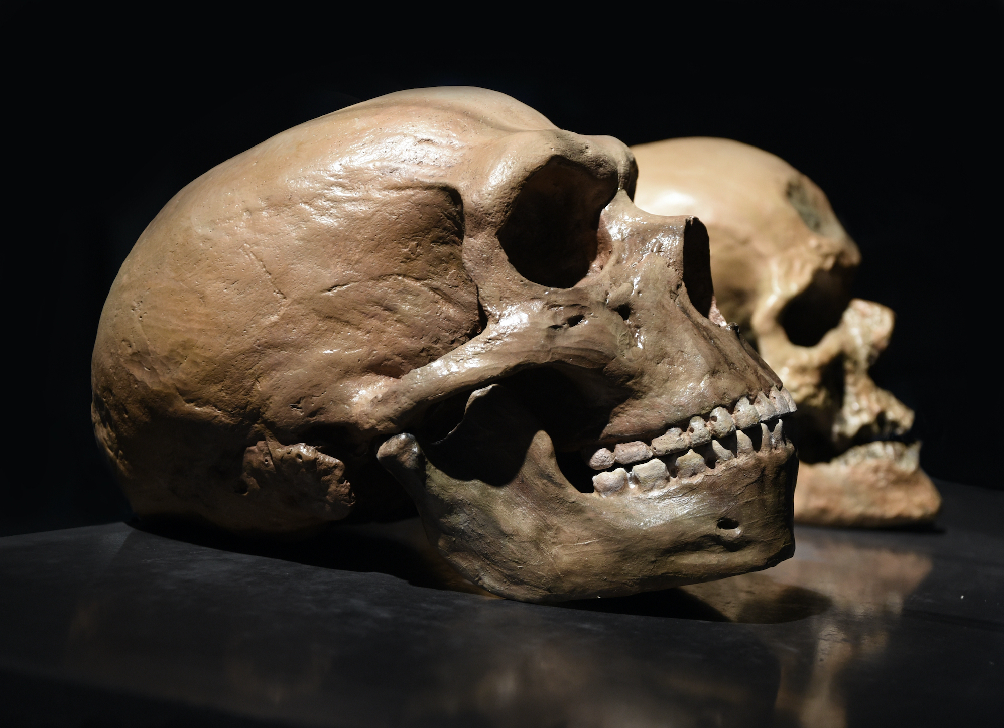 Top image: Neanderthal (foreground) and human skulls. Credit: Petr Student