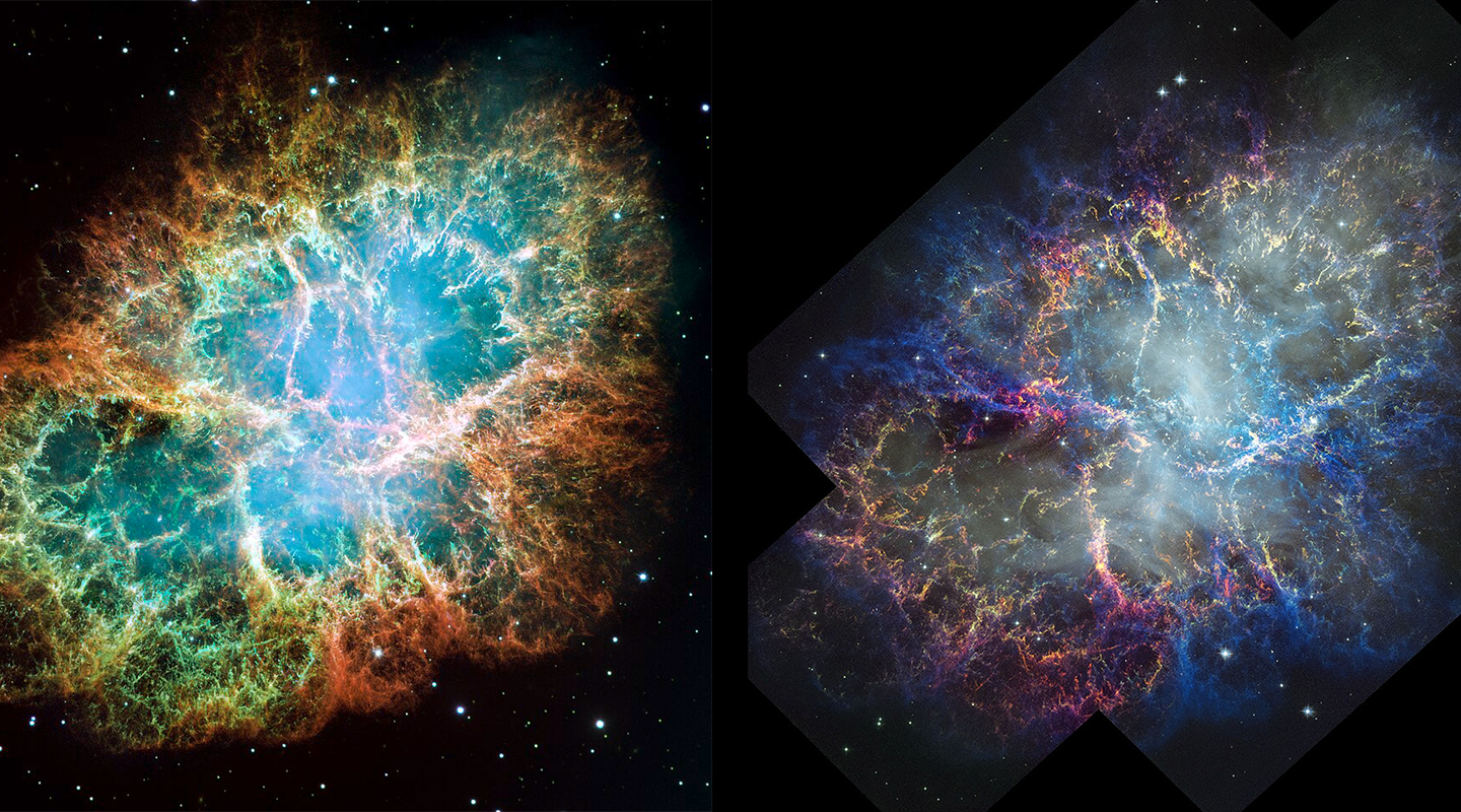 By comparing the two images, NASA astronomers like William Blair of Johns Hopkins University can track how the nebula has evolved over time. According to Blair, the newly released image shows how the filaments of gas at the outer edges of the nebula have moved more over the past 25 years than those closer to the center. Rather than simply stretching farther outward, they appear to be moving away from the center of the nebula. That’s because at the heart of the gas cloud lies a rapidly spinning neutron star—a pulsar—whose magnetic field whips the gas into a rapidly moving whirlwind of charged particles. The outer filaments of the Crab Nebula are estimated to be moving at 3.4 million miles per hour.