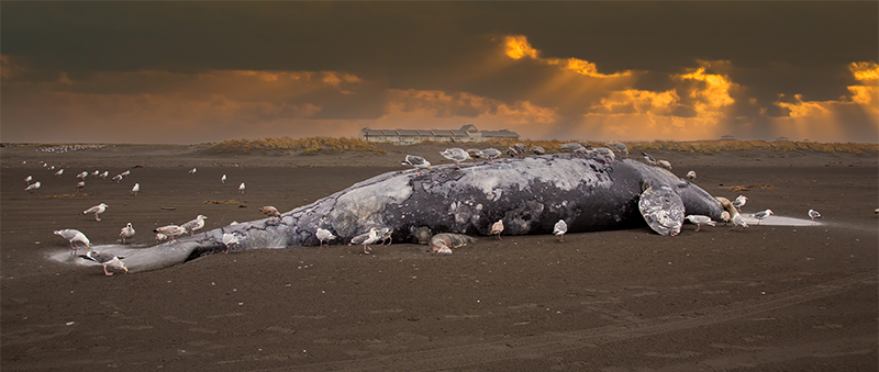 But the dearth of whales isn’t entirely responsible for the dearth of whale carcasses. We humans also tend to be overzealous morticians. Rather than letting stranded animals fulfill their ancient roles, we hastily dispose of their remains, depriving coastal ecosystems of nature’s greatest windfall. As one group of scientists put it in a recent review of cetacean carcass management, whaling and whale-removal have together “led to radical changes in the abundance and availability of large marine biomass inputs.”7 In other words: Our shorelines miss their whales and dolphins.
