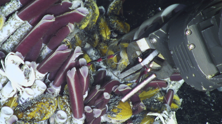 In fact, the black smoker may be a window into the eruption of life on Earth. Vetriani is part of a team of scientists who have come to the vents to study the microbes that carpet every surface in and around them. Earlier, in the ship’s library, chief scientist Stefan Sievert, a microbial ecologist at Woods Hole Oceanographic Institution, had outlined the goals of the month-long expedition. He explained that understanding how the microbes survive in the hellish vents—what nutrients they use and at what rates; how quickly they turn vent fluids into living biomass—could give insight into how biological life evolved. I was tagging along and assisting with record-keeping during the work on the bottom, which ran 24 hours a day, save the occasional interruption when the seas were too rough to deploy the ROV safely.