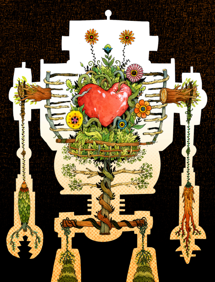 Believe it or not, I was the illustrator for the entire first online issue of Nautilus magazine, and in that issue I did several images that I still love to this day. Like "Love Bot," a giant robot with interior guts that are all made of organic material, for an article asking if robots will ever have human emotions.