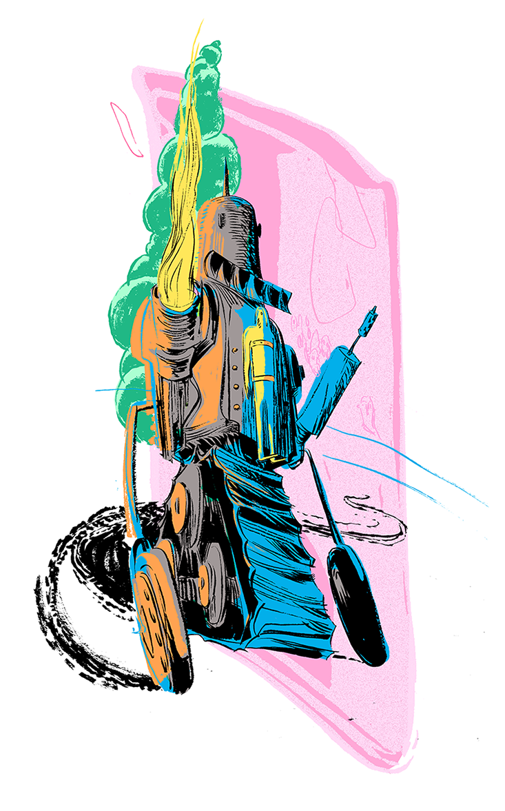 “Nice initiative there,” Zaffi continued. “Too bad about your complications. Helena thought you were going to pull it off without help.” She nodded at the woman sitting beside her. “She wanted you to steal one of the giant robots and rampage across the city. I thought that was a little far-fetched.”