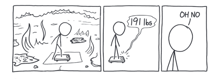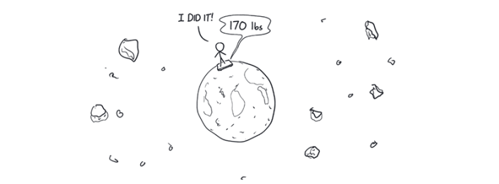 You keep going. After four hours of work with your planet peeler, you’ve removed 60 kilometers of mostly molten rock. When you step on the scale, you finally see a change.