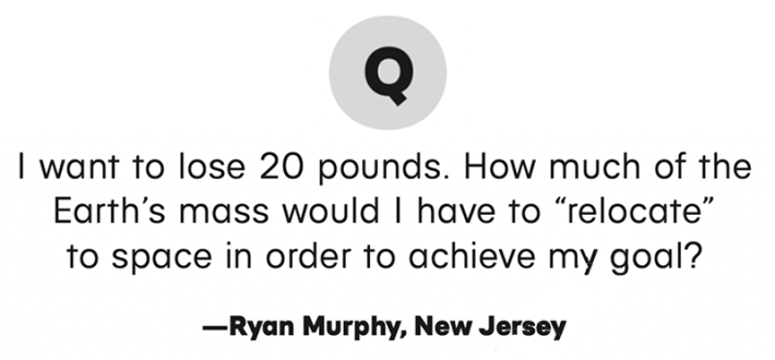 This plan has some flaws. It destroys the Earth, yes, but it’s also unnecessarily inefficient. There’s a much easier way to reduce the Earth’s gravitational pull on you without changing your mass or leaving the surface.