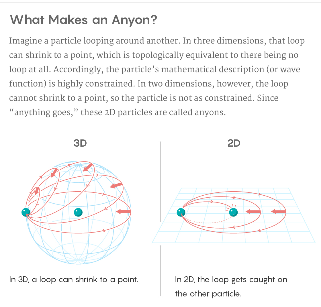 Lead image: The existence of anyons was inferred from quantum topology — the novel properties of shapes made by quantum systems. Credit: David S. Hall, Amherst College, using code developed by Niles Johnson