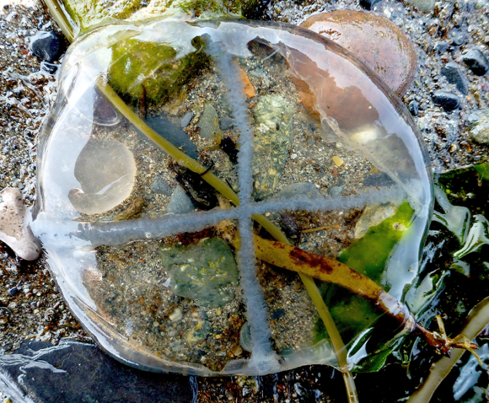 Jellyfish are poster creatures for transparency: They are simple, thin-bodied animals whose bodies are 95 percent water, and what oxygen they need is absorbed directly from surrounding water, eliminating the need for light-absorbing respiratory pigments.