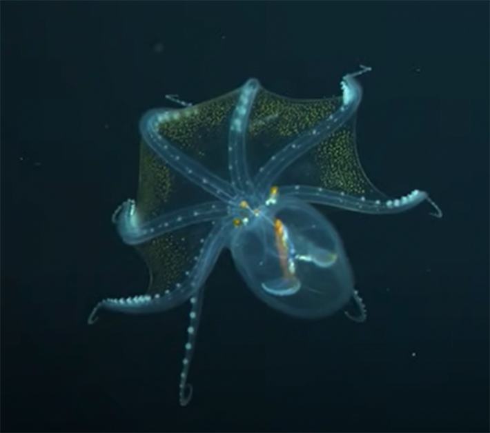 Sönke Johnsen calls his “favorite mating mystery” that of the glass octopus, who must copulate to reproduce yet are rare, nearly transparent animals in a very large ocean.