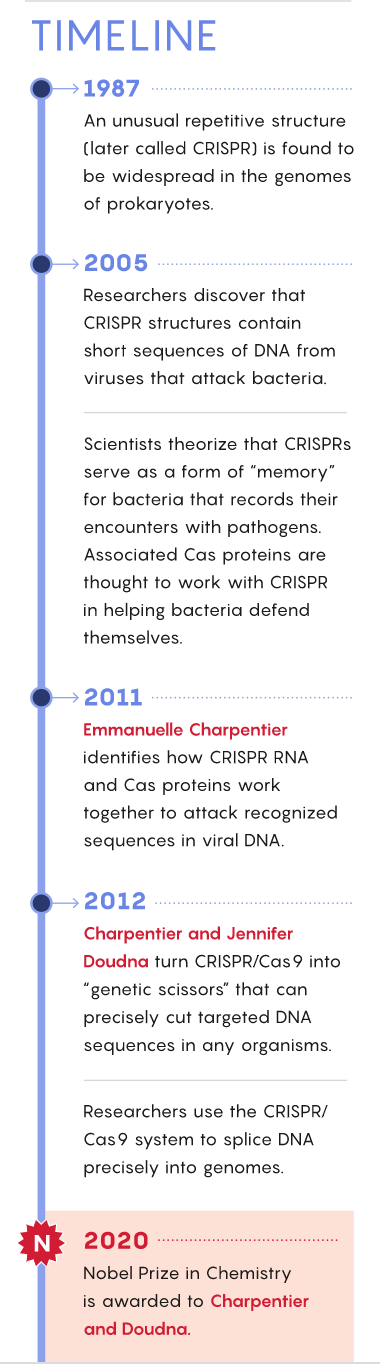 A humbling lesson of science is that, even when it comes to many of humanity’s most brilliant inventions, nature got there first. The 2020 selection for the Nobel Prize in Chemistry goes to two scientists who share credit for identifying and developing a revolutionary method of genome editing—one that has allowed researchers to modify and investigate the genomes of microbial, plant and animal cells with an ease, precision and effectiveness that would have been unfathomable even a decade ago. Yet the technology that came out of their work, revolutionary as it is, springs from an innovation that first evolved in bacteria, probably more than a billion years ago, and went unnoticed until recently.