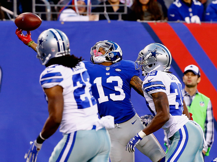 It was the catch that broke the Internet. In a game against the Dallas Cowboys last week, rookie wide receiver for the New York Giants Odell Beckham Jr. launched himself into the air backwards, arm outstretched, and managed to catch a pass using one hand—actually just the tips of a thumb and two fingers—to score a touchdown. The Giants would go on to lose the game, but compared to the catch, no one seemed to care about that. The catch has gotten millions of online views and social-media mentions, and has been hailed as a near-miraculous feat of skill and athleticism, both by fans and other pro athletes.