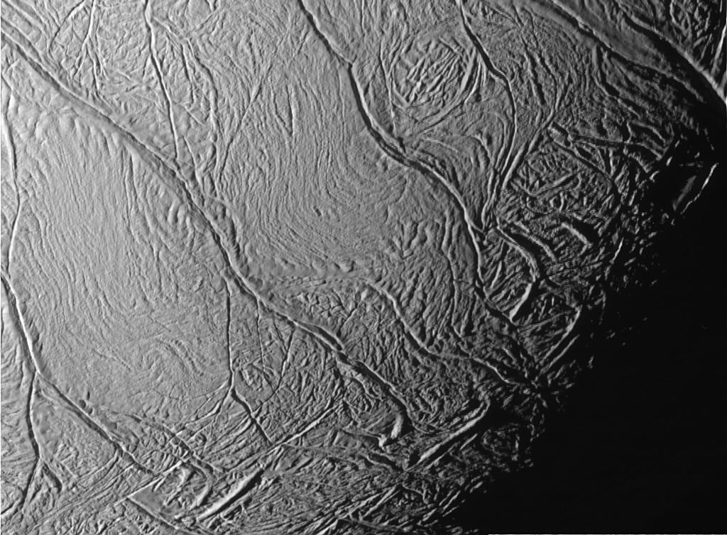 Lead image: Fractures known as “tiger stripes” in the south polar regions of Enceladus, as imaged by the Cassini spacecraft on July 14, 2005. Credit: NASA/JPL/Space Science Institute