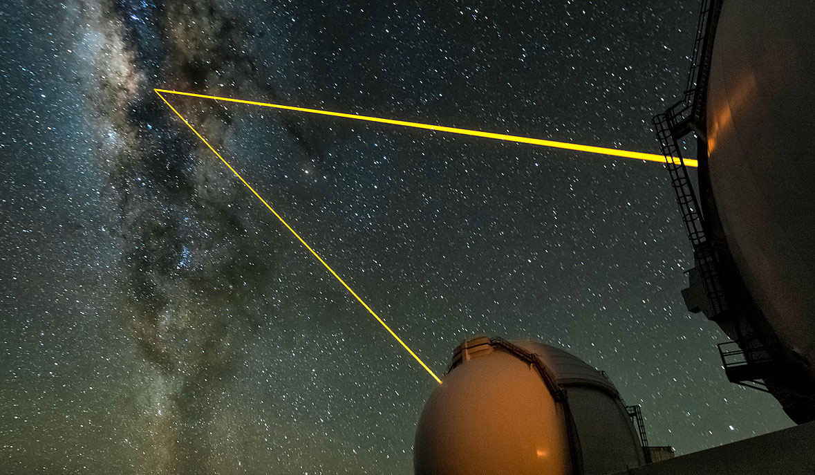 The technology of adaptive optics is quite simple, in principle. First, astronomers measure the instantaneous turbulence in the atmosphere by looking at the light from a bright, known object—a “guide star”—or by using a laser tuned to make sodium atoms in a thin layer of the upper atmosphere fluoresce and glow as an artificial guide star. The turbulence measurements are used to compute (also instantaneously) the distortions that turbulence creates in the incoming light waves. Those distortions are then counteracted by rapidly morphing the surface of a deformable mirror in the telescope. Measurements and corrections are done hundreds of times per second—which is only possible with powerful computing capability, sophisticated opto-mechanical linkages, and a real-time control system. We know how to build these tools.