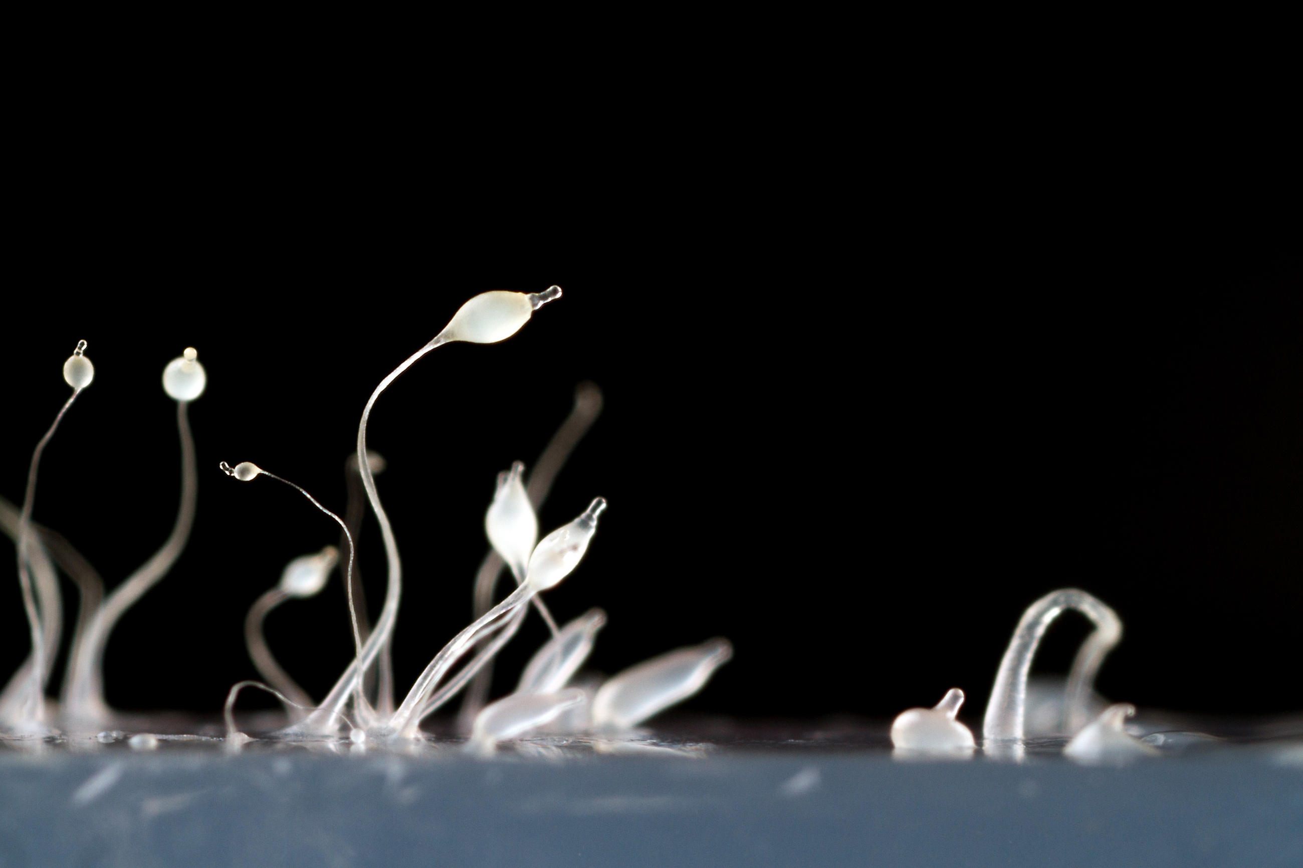 Lead image: Scientists study the slime mold Dictyostelium discoideum for insights into how multicellular and collective behaviors evolved and how they operate now. Slime molds typically live as disorganized individual amoebas, but they cooperate to form multicellular fruiting bodies in the absence of food. Credit: Alexander Wild