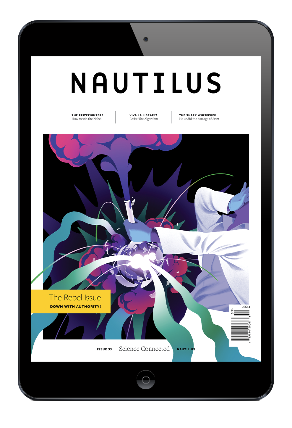 Issue 55 of the Nautilus print edition is our Rebel Issue. It includes contributions from science writer Elena Kazamia, astrophysicist Paul M. Sutter, film producer Namir Khaliq, philosopher Jonathon Keats, and more. This issue also features new illustrations by Angie Wang and Mark Belan.