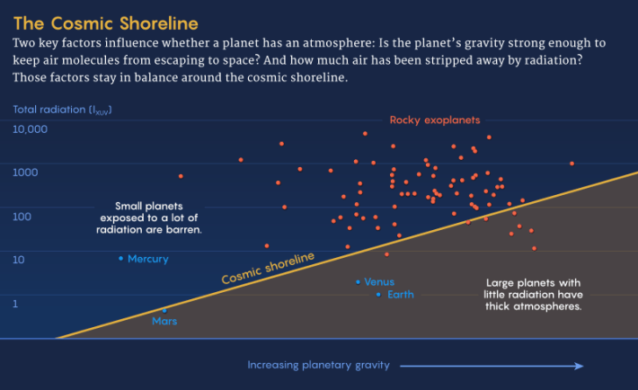 Lead image: The cosmic shoreline comes from two considerations: How do atmospheres form, and how are they lost? Credit: Kristina Armitage/Quanta Magazine.