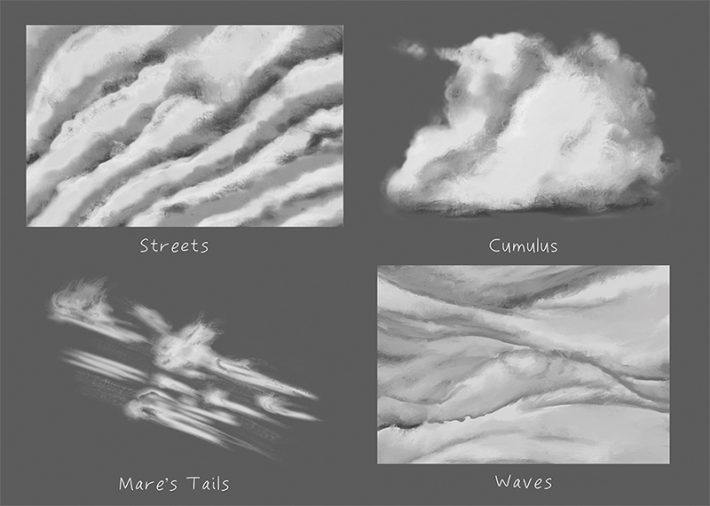 But these are not the only forms you see in the sky. From past walks you know that sometimes there are rows of clouds that appear to stretch from horizon to horizon, all traveling together like parallel streets on a map. Sometimes even more complex patterns form. It’s not unusual to see two separate sheets of clouds at different heights moving at different speeds and in different directions. Other times, the patterns interfere, creating a grid-like texture.