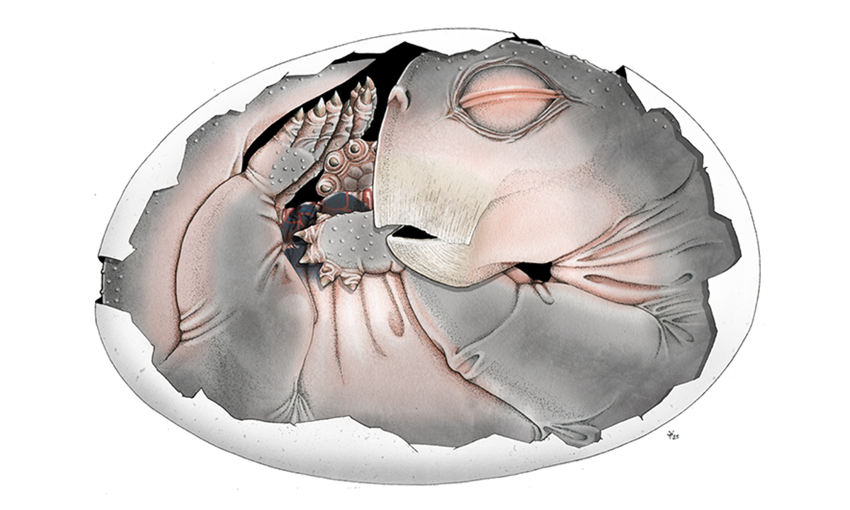The eggs were large relative to Lystrosaurus body size, which suggests that they were well-supplied with nutrients so that hatchlings emerged mature and ready to feed on their own. The researchers hypothesized that “by producing large, yolk-rich eggs and precocial young, Lystrosaurus was able to thrive in the harsh, unpredictable conditions following the end-Permian mass extinction.”