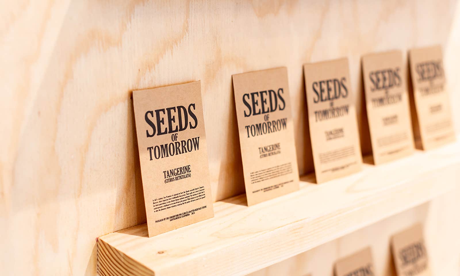 Recently in San Francisco, the city I call home, I’ve begun to take the opposite approach, seeking to meet the paradox from the other end. I’ve started to distribute packets containing seeds to grow tangerine plants, a staple crop in Tangiers, one of San Francisco’s climate analogues. Each packet is printed with instructions directing the recipient to retain the seeds as a form of insurance for future generations, in case climate change continues unabated. The envelope in which they’re sealed is presented as a challenge to everyone living in the present: What actions are people willing to take to alter the planetary climate trajectory, ensuring that the packet will never need to be opened?