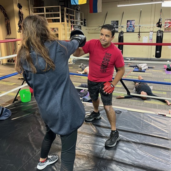 Magoni noted that one benefit of Rock Steady Boxing is the feeling of control derived from boxing itself. Even if you’re unable to stand, and box while sitting in a chair, you feel relief by being physically aggressive, active rather than passive.