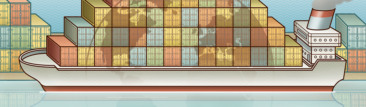 Tagged, folded, and boxed, the T-shirt would be “stuffed” into a container with 33,999 identical shirts at the factory. Once sealed with a plastic tag and listed on a computerized manifest, the merchandise could pass through nearly three dozen steps before arriving at a discount clothing retailer’s distribution center near Munich. There’s the trucker who moves the box to a waiting ship in Xinjiang, the feeder ship that moves it to Singapore to be loaded onto a bigger Europe-bound freighter, the crane operator in Hamburg, customs officials, train engineers, and more.