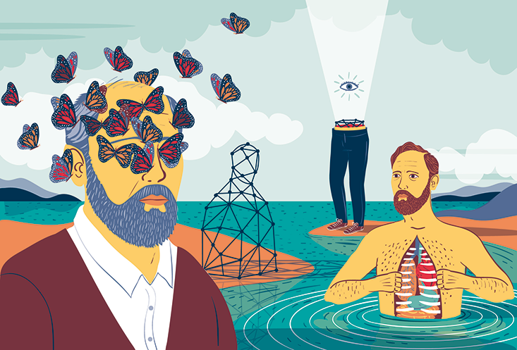 After lecturing from the podium on who knows what philosophical subjects. I find myself amongst friends. The question of what constitutes human nature is raised, I do not know how. Without allowing anyone else to speak in an authoritative tone and capturing the attention of my listeners—all friends and colleagues—(I hear myself proclaiming vehemently), I declare that the doctrines [———] of the unity of the human individual are an illusion, that in reality there are four men inside of us: