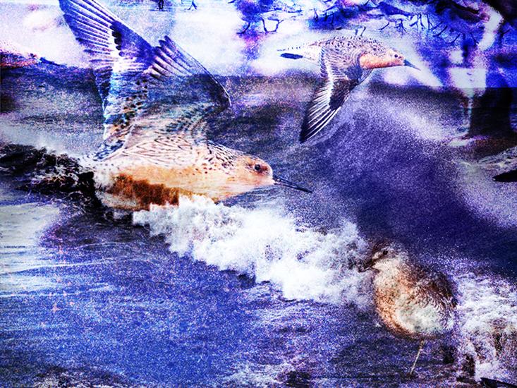I watch as they fly off in a continuous flourish like a magician’s curtain being swept aside. The dense flock swirls and feints like a single aerial organism. Once aloft, the birds first coalesce as an egg-shaped cloud low over the water, before gaining height and taking on ever more extravagant, twisted shapes like a pixelated flamenco dancer. As the ever-changing shape swerves and dives, each of its dots switches between light and dark as the bird’s body banks into a turn, creating a scintillating effect in the smoke-like apparition. All the while, the birds call, queek-eek, their cries piling up on one another to make a deafening, high-pitched white noise.